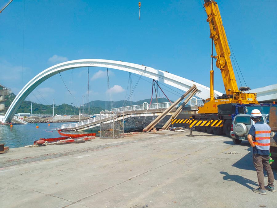 黃玉霖表示,斷橋分兩部分,上方拱型結構重500公噸,下方橋面逾千公噸,在確保斷橋拆前不再位移後,橋拱下方清出12公尺寬、5公尺深臨時航道,提供港內20噸以下漁船進出,至4日下午4時出港170艘、進港113艘。