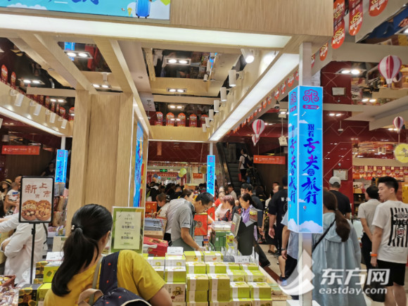網紅店熱度不減,一些經典的特色美食也十分火爆。今天上午11點,記者在上海國際飯店的西餅屋看到,排隊的隊伍已經從店門口到了路口處,接近三四十人。同樣,位於南京路步行街上的上海市第一食品商店內,銷售情況也是一片火爆,幾乎每個特色食品的櫃枱前都有不少顧客正在挑選商品,其中不乏有帶着行李箱的遊客。從河南來上海旅遊的王先生告訴記者:“馬上就到重陽節了,正好這次來上海旅遊,帶一些點心給家裏的老人,這家據説是老店,質量上信得過。”