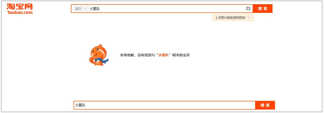 隨後觀察者網發現,如今在淘寶、天貓上均已無法搜索到任何包含火箭隊關鍵詞的寶貝。
