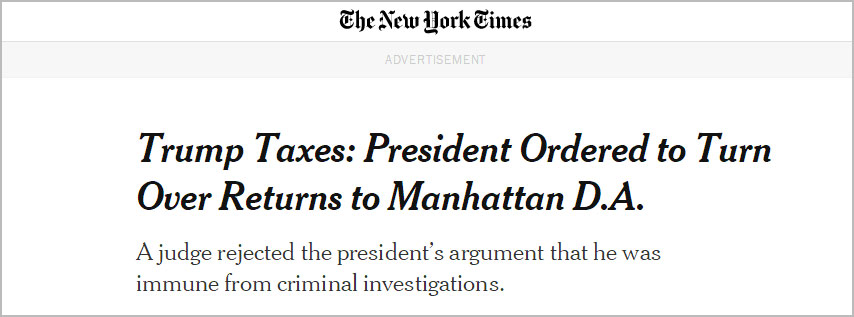 據瞭解,曼哈頓檢察長塞勒斯·萬斯一直在調查特朗普及其企業在2016年大選前,通過律師科恩向豔星丹妮爾斯支付“封口費”的款項是否違反紐約州的法律,當時特朗普極力否認與該豔星有染。一個多月前,曼哈頓地方檢察院向特朗普的馬扎爾斯會計事務所(Mazars USA)發出傳票,要求提供其2011年以來的個人和企業税單。這引起了有關美國總統任內是否可以避免調查的憲法問題大爭論。