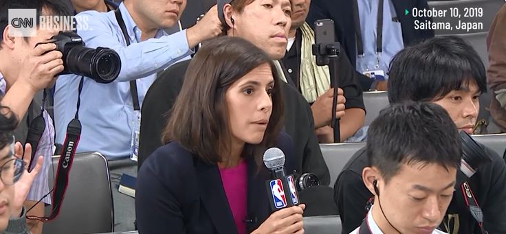 據美國有線電視新聞網(CNN)當地時間10月10日報道,當天在東京舉行的NBA賽後新聞發佈會上,CNN記者克里斯蒂娜·麥克法蘭(Christina Macfarlane)試圖就NBA在華引發的輿論事件向火箭隊當家球星詹姆斯·哈登,以及拉塞爾·威斯布魯克提問,隨後被火箭隊的媒體負責人以“與籃球無關”叫停。