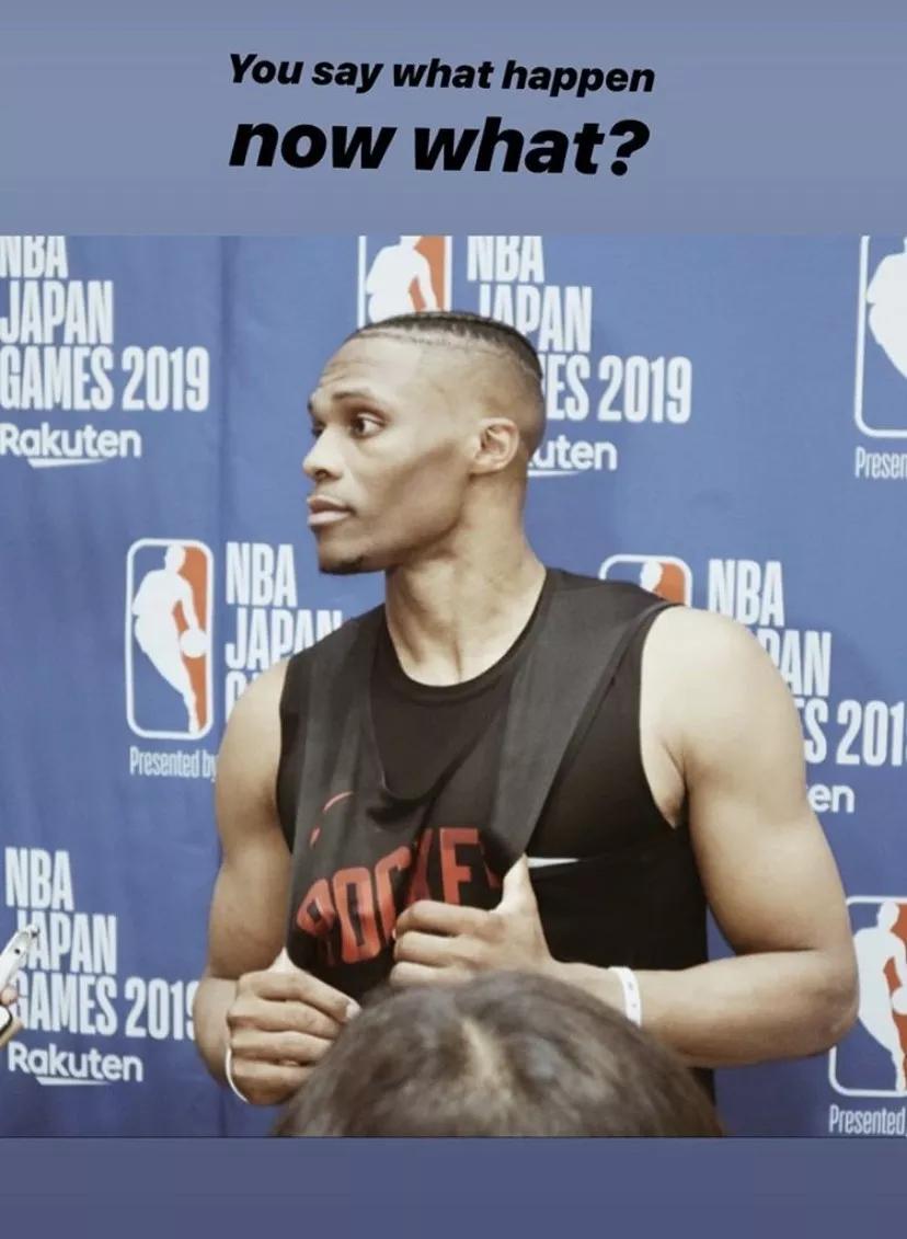 8日,威斯布魯克還穿着一身紅色唐裝走進新聞發佈會。後來因為穿唐裝引發部分美國球迷不滿,威斯布魯克的回應卻很“剛”,在國外社交媒體上傳了一張照片回懟。