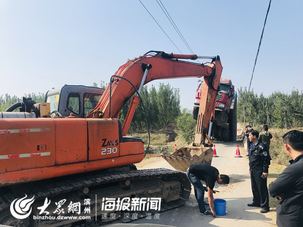 經初步調查,13日凌晨4點左右,一輛魯MAN226冀JSH50掛重型半掛貨車沿渤海十八路由南向北行駛至市西辦事處李茂家村附近,右轉彎進入連接渤海十八路與李茂家村村西鄉間路的一座寬4米左右的小橋時,致使橋面坍塌。現場貨車呈翹起之勢,車頭懸於半空中,車尾插入水中,事故未造成人員傷亡。據現場瞭解,該橋建設於1974年,橋頭有警示標識,警示承載4噸。