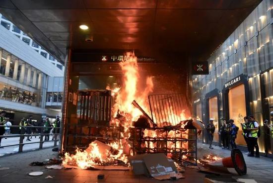 中環站出口被縱火 圖自微信公號“俠客島”