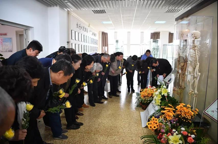 圖為李秉權、胡素秋的親友及昆明醫科大學師生鞠躬致敬 劉冉陽攝