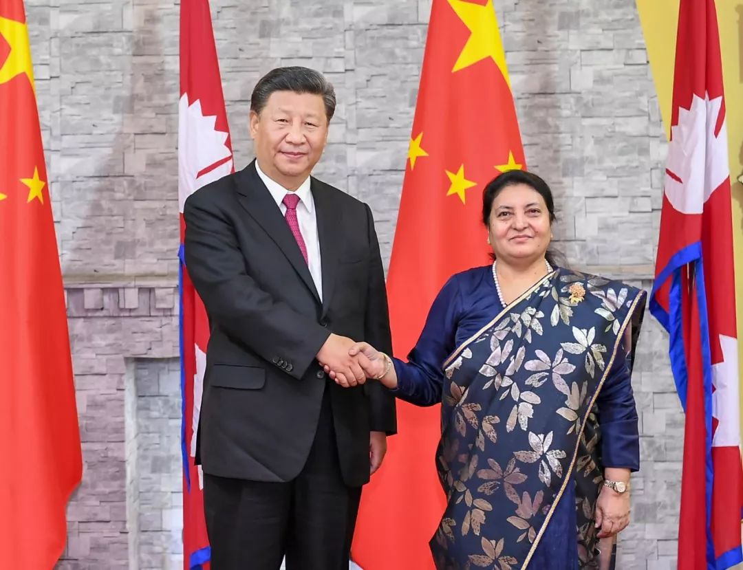 10月12日,國家主席習近平在加德滿都總統府會見尼泊爾總統班達裏。新華社記者謝環馳攝