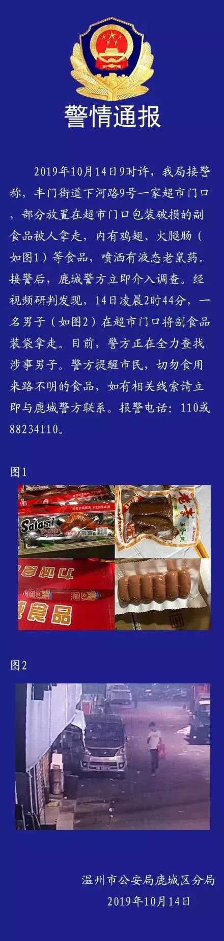 温州一超市門口噴灑了老鼠藥的零食被人拿走,警方全城找人!