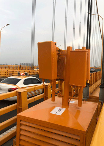 建站大橋上的基站,左側長方形盒子是5G發射單元,右側長方形盒子是4G發射單元