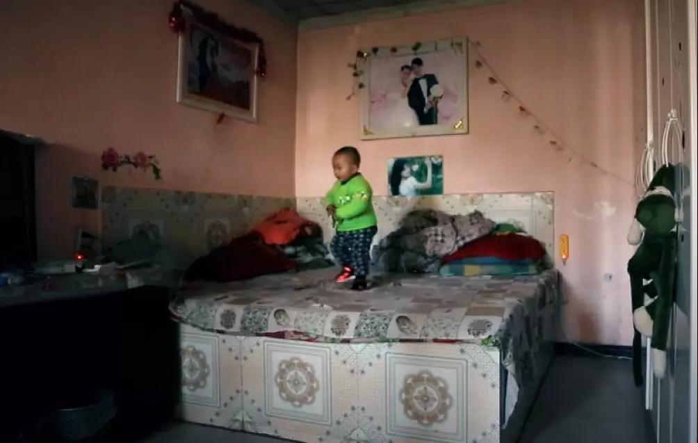 這個孩子叫皓皓,他被家裏的老人拿一個磚頭拴在炕上,兩平米的炕就是他的活動範圍。他的父母當時分居,現在離異,爺爺和奶奶都沒有照顧他的能力,平常主要是太奶奶在照顧他。