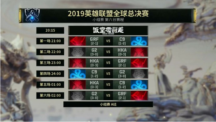明日《英雄聯盟》S9全球總決賽小組賽將迎來第六比賽日。比賽均為A組之間的較量,共進行6場BO1比賽,A組每支戰隊將進行三場比賽。具體安排為: