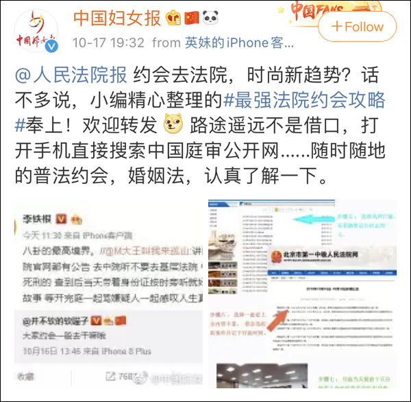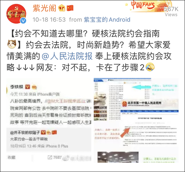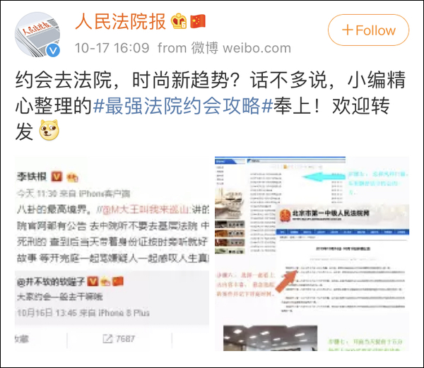 如果問你這年頭去哪裏約會,你還説電影院,那你可就Out了。來看看@人民法院報 10月17日給出的最新約會指南吧,——去法院旁聽庭審!