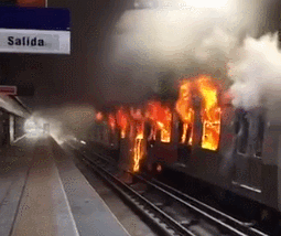 聖地亞哥地鐵4號線列車被燒燬 推特視頻截圖