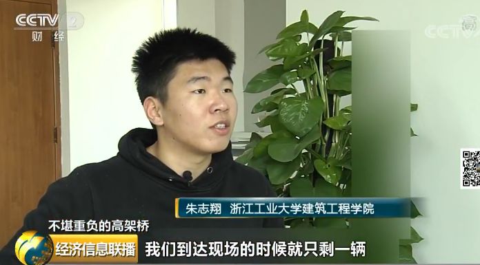 浙江工業大學建築工程學院 朱志翔:我們到達現場的時候就只剩一輛,那輛拉着鋼卷的那輛車,貨物已經散落在地上。