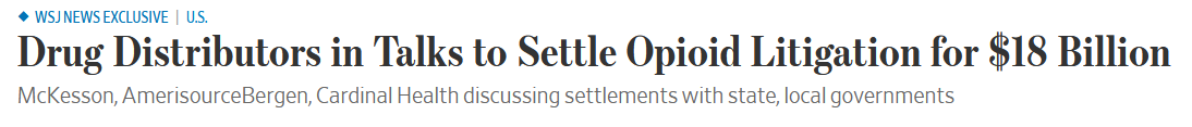 觀察者網注意到,就在達成和解協議前,《華爾街日報》曾於本月15日報道,知情人士透露,上述三家美國藥企麥克森、美源伯根和卡地納健康集團正在與控方談判,準備在未來18年支付180億美元以和解州和地方政府控其加劇阿片類藥物危機的大規模訴訟。知情人士還説,強生公司也參與了談論,將提供額外的資金。