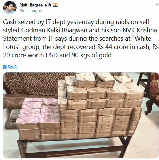 隨後,印度税務更正了查獲物品的價值,稱其一共在巴關多處房產和辦公室內,查獲了10.6億盧比的資產,其中包括4.5億現金,4.1億盧比的黃金首飾和鑽石,以及價值2億盧比的外幣。