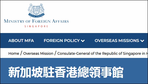 需要註明的是,大使館是一國在建交國首都派駐的常設外交代表機關,因此新加坡在港並無大使館,只有領事館。