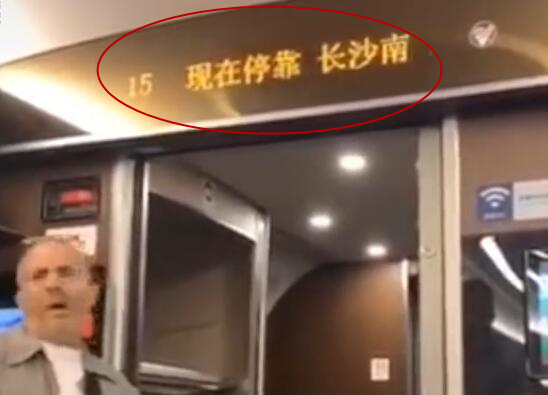 車廂內到站廣播顯示,事發時車輛到達站點為長沙南站。