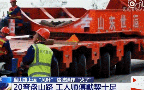 據央視新聞報道,運輸車司機宋連民介紹,最難的就是拐急彎,注意得看好了前後,前面剷車拽着,拐這個彎角度,還有後面的反光鏡,看後面(控制)工裝的那個人。