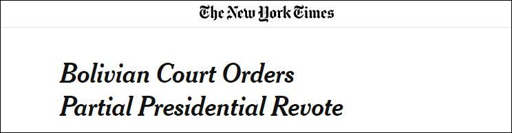 據《紐約時報》最新消息,24日,玻利維亞選舉法庭裁定,**由於存在違規行為,四個地方需要重新投票。**投票將在11月3日進行,這進一步推遲了大選的最終結果。