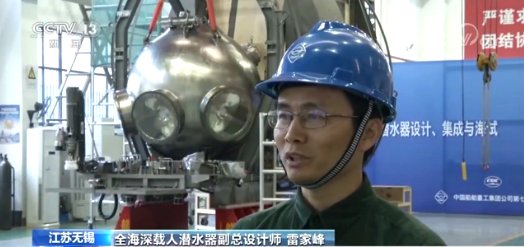 全海深載人潛水器副總設計師雷家峯:我們知道這個深度啊,是地球上最深的一個海溝的深度了,達到一個極限的深度,實際上也為適合極限的深度進行了極限設計,製造過程也可以説是一個極限製造。