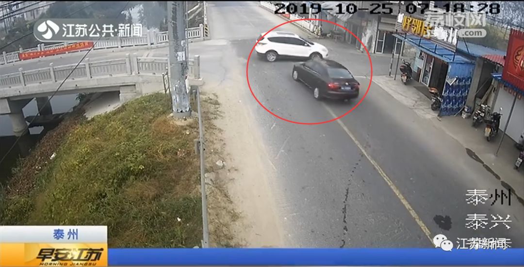10月25日上午7點多,泰州市新洋橋附近一個十字路口,一輛轎車車速過快撞上一輛白色SUV,後者失控,直接撞塌了路邊民房,監控拍下當時驚人的一幕↓↓↓