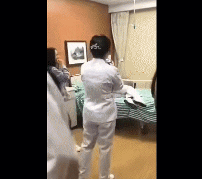 還有一段網傳視頻顯示,林俊杰出院後,多名護士圍在其用過的病牀前,其中一個護士嬉笑着躺在了病牀上,旁邊的護士們很興奮地舉着手機拍照留念,隨後,另外一名身穿黑色衣服的女士也衝上前去順勢躺在了病牀上。