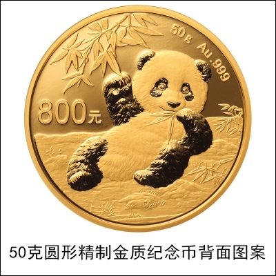 (六)50克圓形金質紀念幣為精製幣,含純金50克,直徑40毫米,面額800元,成色99.9%,最大發行量30000枚。