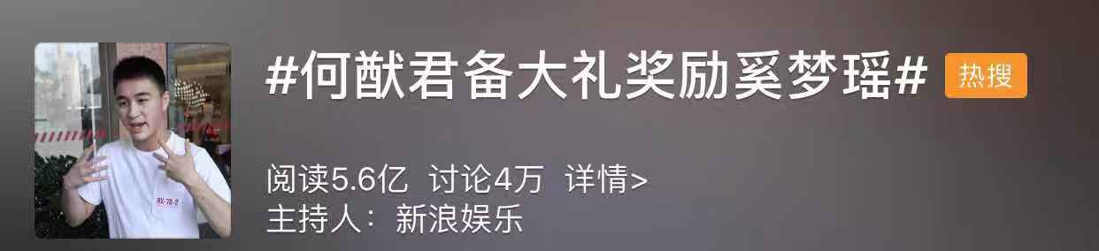 因使用“獎勵”一詞,何猷君隨即在社交媒體上引發輿論批評,昨晚(27日),他在微博回應稱,“獎勵”兩個字並非自己所説,只是記者問“打算怎樣獎勵老婆”時,自己隨口回答。在這條回應後,何猷君帶上了#何猷君備大禮獎勵奚夢瑤#的話題。