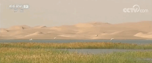 在這片“沙漠之海”上,白鷺和野鴨棲息翱翔,乾涸消失了近300年的疏勒河終端湖——哈拉奇重現,並形成5平方公里左右的湖面,蔚為壯觀。這是科研人員近日在甘肅敦煌西湖國家級自然保護區西端和庫姆塔格沙漠東緣交匯地發現的。