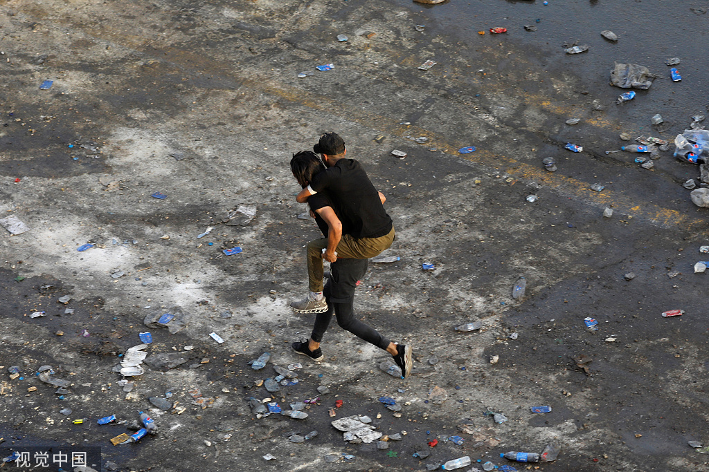 不少抗議者被催淚瓦斯驅散 @視覺中國