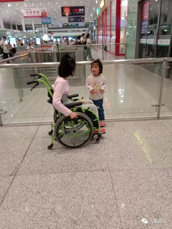新學校地勢不低,從學校正門進入需要走十多級台階,段會良推着輪椅非常困難,只有與學校商量避開台階,從另一邊的土坡上去。現在,學校的偏門成了父女倆的專屬通道,段會良每天都會在學校陪着小琪。