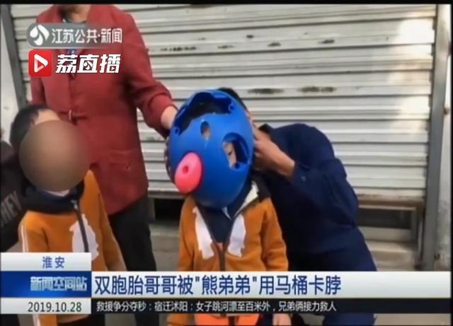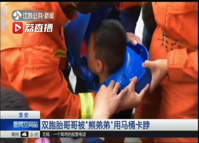 雙胞胎哥哥被“熊弟弟”用馬桶卡脖 消防緊急救援