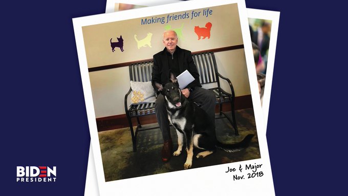 與此同時,拜登上傳了一張與自己去年收養的德國牧羊犬合照。