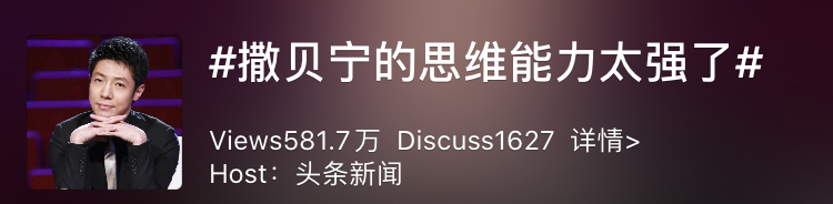 除了金句頻出,作為第三屆央視主持人大賽金獎的獲得者,撒貝寧的思維能力也令人稱讚。
