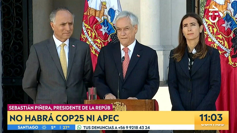 此前智利總統塞巴斯蒂安·皮涅拉宣佈將取消氣候大會的舉辦,因為“智利政府的首要任務是恢復公共秩序、安全和社會和平。”