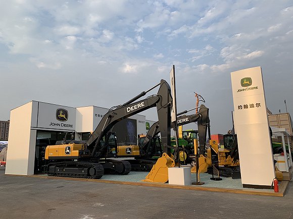 就在“終極破碎機”展台不遠處,是全球農機製造廠商美國約翰迪爾帶來的E400 LC履帶式大型液壓挖掘機,這是一款專門為中國市場量身定做的礦山型產品產品。