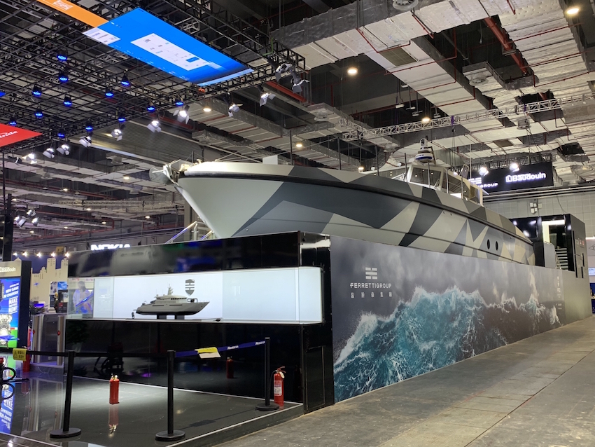 走進4.1館的中心區域,可以看見歐洲第一大豪華遊艇設計製造公司意大利法拉第集團帶來的最新型號FSD195公務快艇。