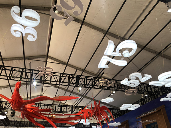 展館天花板上懸掛着李氏辣度的度數。澎湃新聞記者 李菁 圖