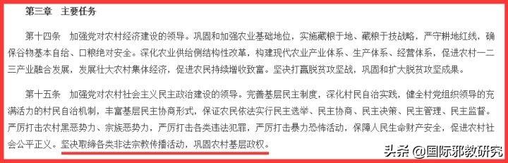 ▲中國共產黨農村工作條例:堅決取締各類非法宗教傳播活動