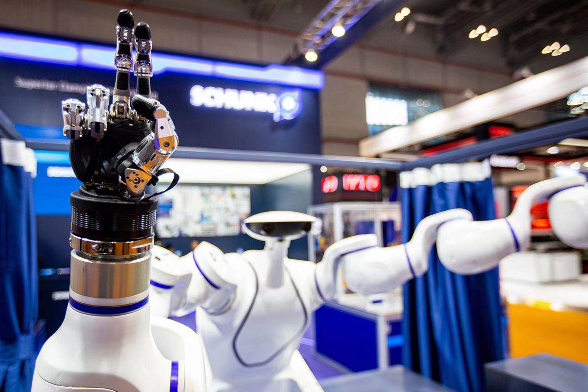 第二屆進博會的裝備展區裏,機器人們不僅擁有無窮的力量,還有如同繡花般的細膩。巨大的NACHI汽車製造機器人正在奮力裝配,細心的ABB垃圾分類機器人正在努力分揀着各種垃圾,還有雄克模塊化和移動機器人,居然可以模仿人手的動作——石頭剪刀布,猜個拳吧!