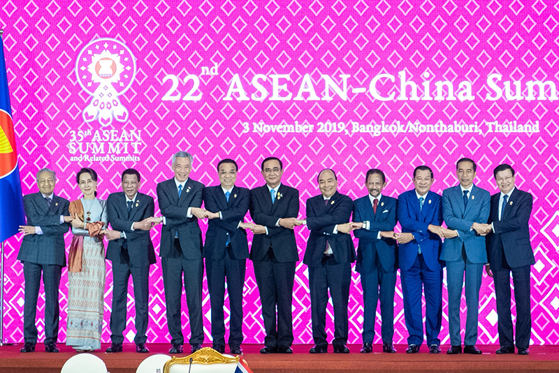 11月3日上午,國務院總理李克強在泰國曼谷出席第22次中國-東盟(10+1)領導人會議併合影。 圖自中國政府網