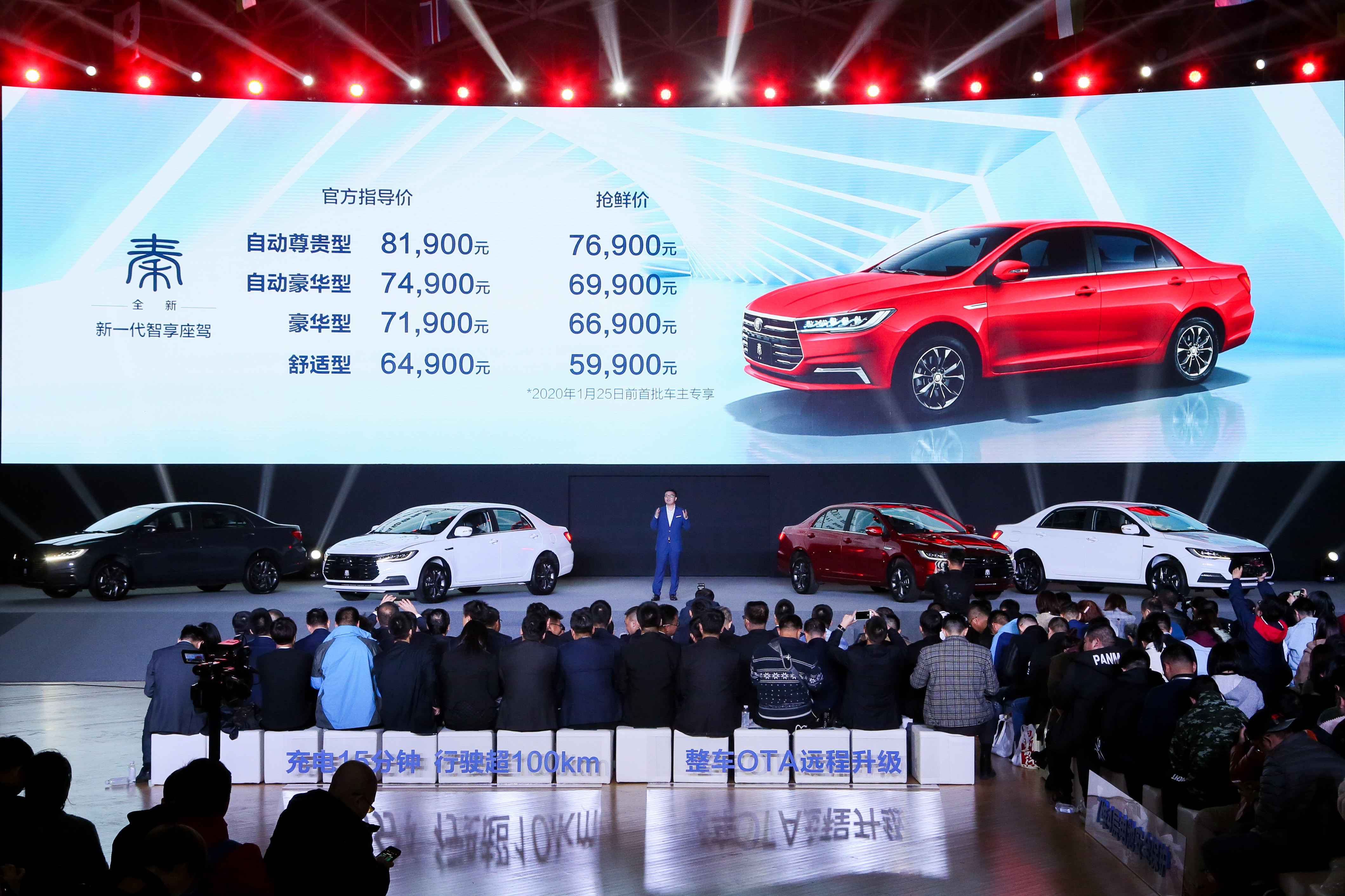 全新秦燃油專享上市搶鮮價,售價區間為5.99萬—7.69萬元(2020年1月25日前首批車主專享)、全新秦EV售價區間為12.99萬—13.99萬元(綜合補貼後)。