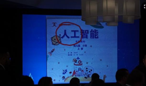 會上展示的這本是河南人民出版社出版,為幼兒園小班小朋友們設計的《人工智能實驗教材》 圖源:美媒