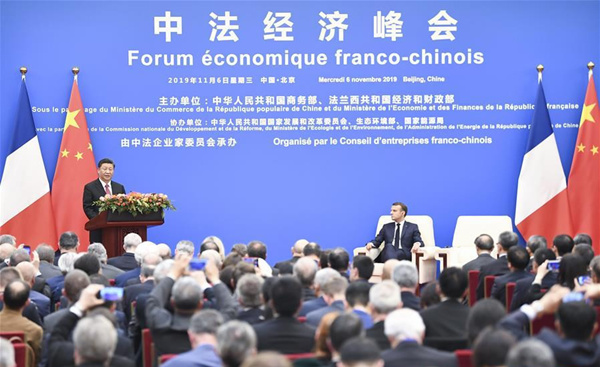 11月6日,國家主席習近平在北京人民大會堂同法國總統馬克龍共同出席中法經濟峯會閉幕式。這是習近平在中法經濟峯會閉幕式上致辭。新華社記者 燕雁 攝