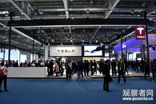 本屆進博會,年輕的特斯拉展台位於展館正中心的位置。儘管歷史不及百年傳統汽車品牌,但作為新能源汽車領域炙手可熱的寵兒,特斯拉從未缺席進博會。