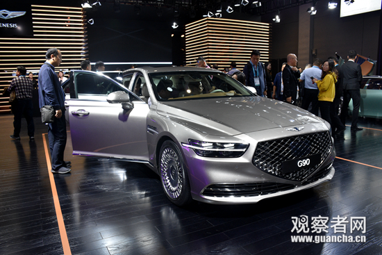 本屆進博會上,捷尼賽思只展出了一款量產車G90,這是一款D級商務轎車,車長超過5米,Nappa真皮包裝的內飾盡顯奢華。捷尼賽思參展商的工作人員表示,G90的主要競爭對手是寶馬7系、奔馳S級等。