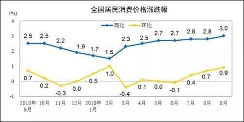豬肉等價格上漲作用下,國家統計局此前公佈的數據顯示,9月CPI同比上漲3%,漲幅較前月擴大0.2個百分點。
