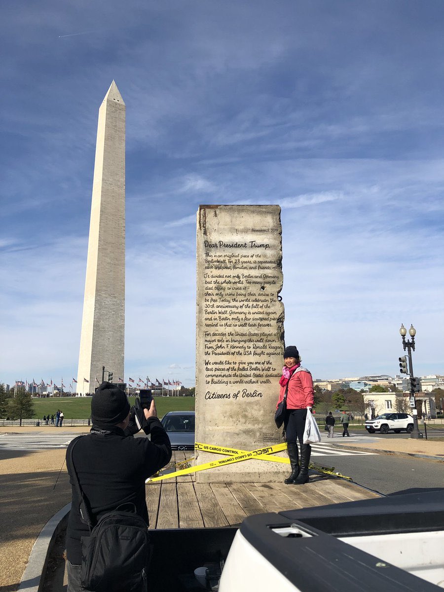 “福克斯新聞”則指出,白宮“不太可能會收下這一禮物”。有社交媒體用户發現,這塊牆被置於華盛頓紀念碑前的空地,“開放社會”組織正試圖找人“代收”。