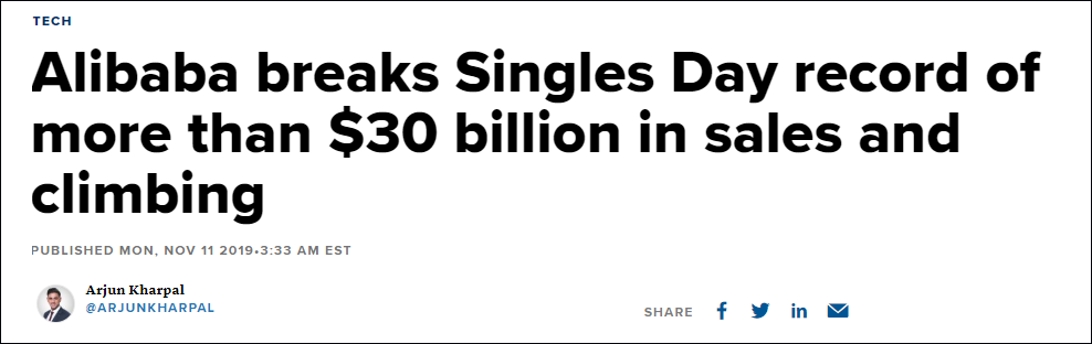 CNBC第一時間報道:阿里巴巴交易額打破紀錄