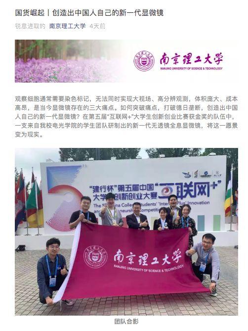 據南京理工大學官微消息,在第五屆“互聯網+”大學生創新創業比賽獲金獎的隊伍中,一支來自南京理工大學電光學院的學生團隊研製出的新一代無透鏡全息顯微鏡。